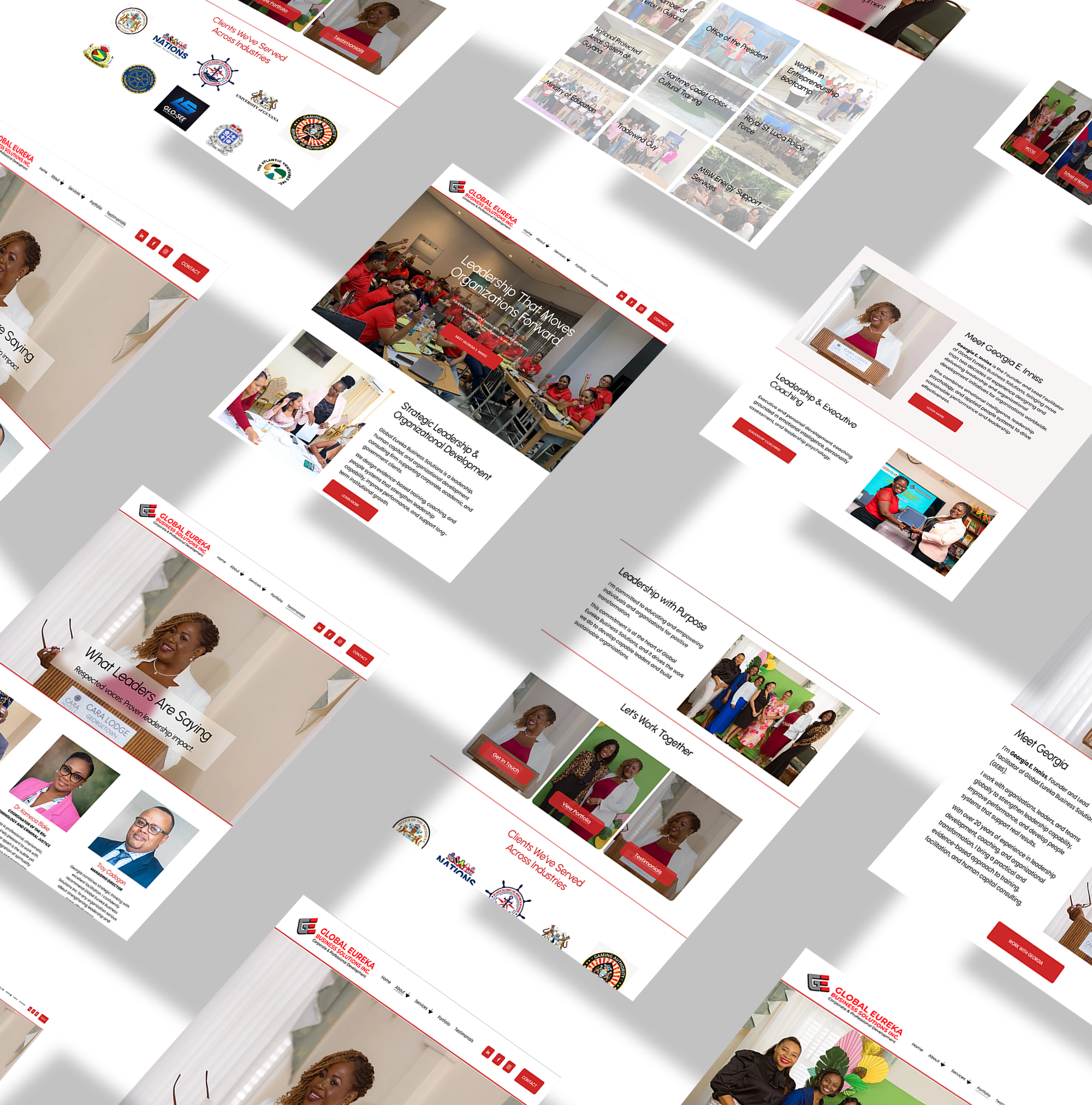 Custom website design for Global Eureka Business Solutions, a leadership development and executive coaching organization with clients across the Caribbean and internationally.